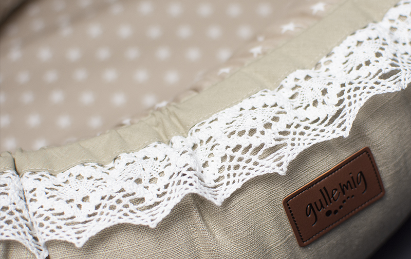 Babynest Amalia is sewn a sand-colored 100% pure linen fabric in natural fibers on the outside that gives a fantastic structure and stability on the edges and a beige cotton fabric with white stars on the inside for your child to have a soft and comfortable sleep.
