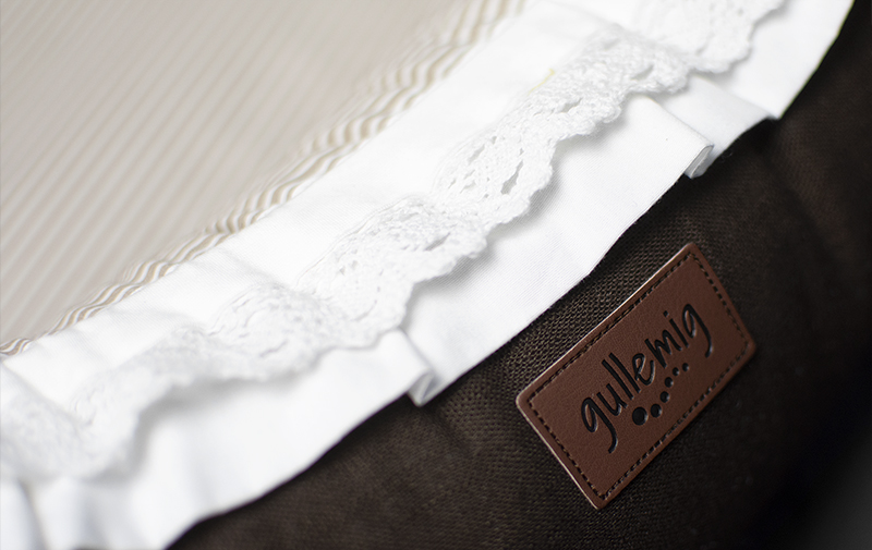 Babynest Estrid is sewn in a brown 100% pure linen fabric in natural fibers on the outside which gives a fantastic structure and stability on the edges and a white/beige striped cotton fabric on the inside so that your child will have a soft and comfortable sleep.