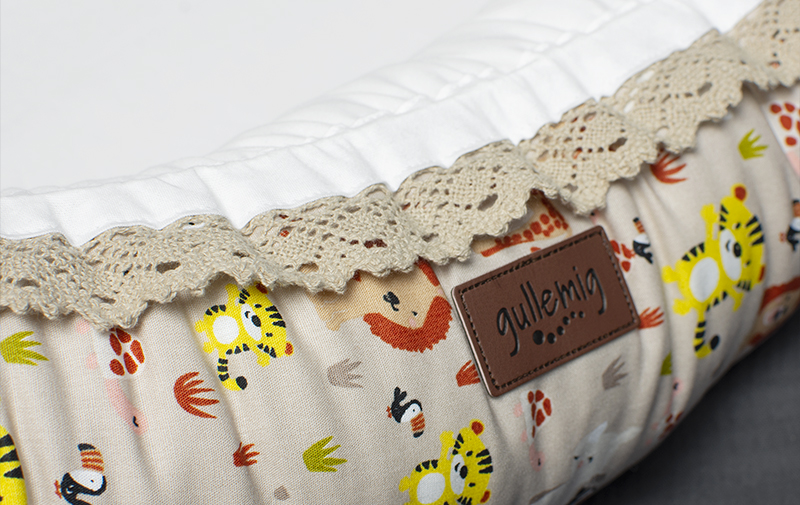 Babynest Lucas is sewn in a beige cotton fabric with cute jungle animals on the outside and a white organic cotton fabric on the inside so that your child will have a soft and comfortable sleep.