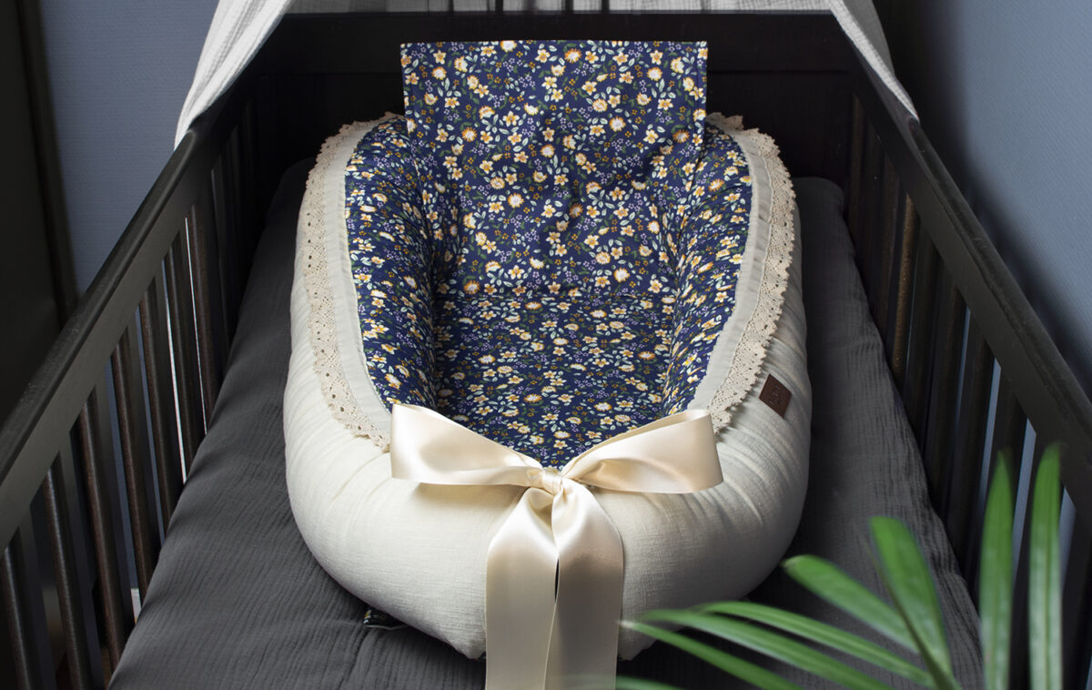 In a baby nest, your baby sleeps safely and securely. I sew my babynest with a removable mattress for easier washing and make the edges extra wide and high so that your child does not roll out of it. A baby nest is also very important when sleeping together and the extra wide and high edges significantly minimize the risk of you rolling over your baby at night. They are sewn with a slightly lower edge at the head end so that the baby can regulate the heat better.